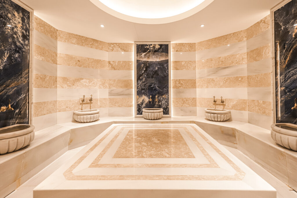 Buhar Odası, Isıtmalı Taş Yatak, Kar Çeşmesi, Kova Duş, Masaj Odası, Sauna, Türk Hamamı, Yüzme Havuzu & Jakuzi